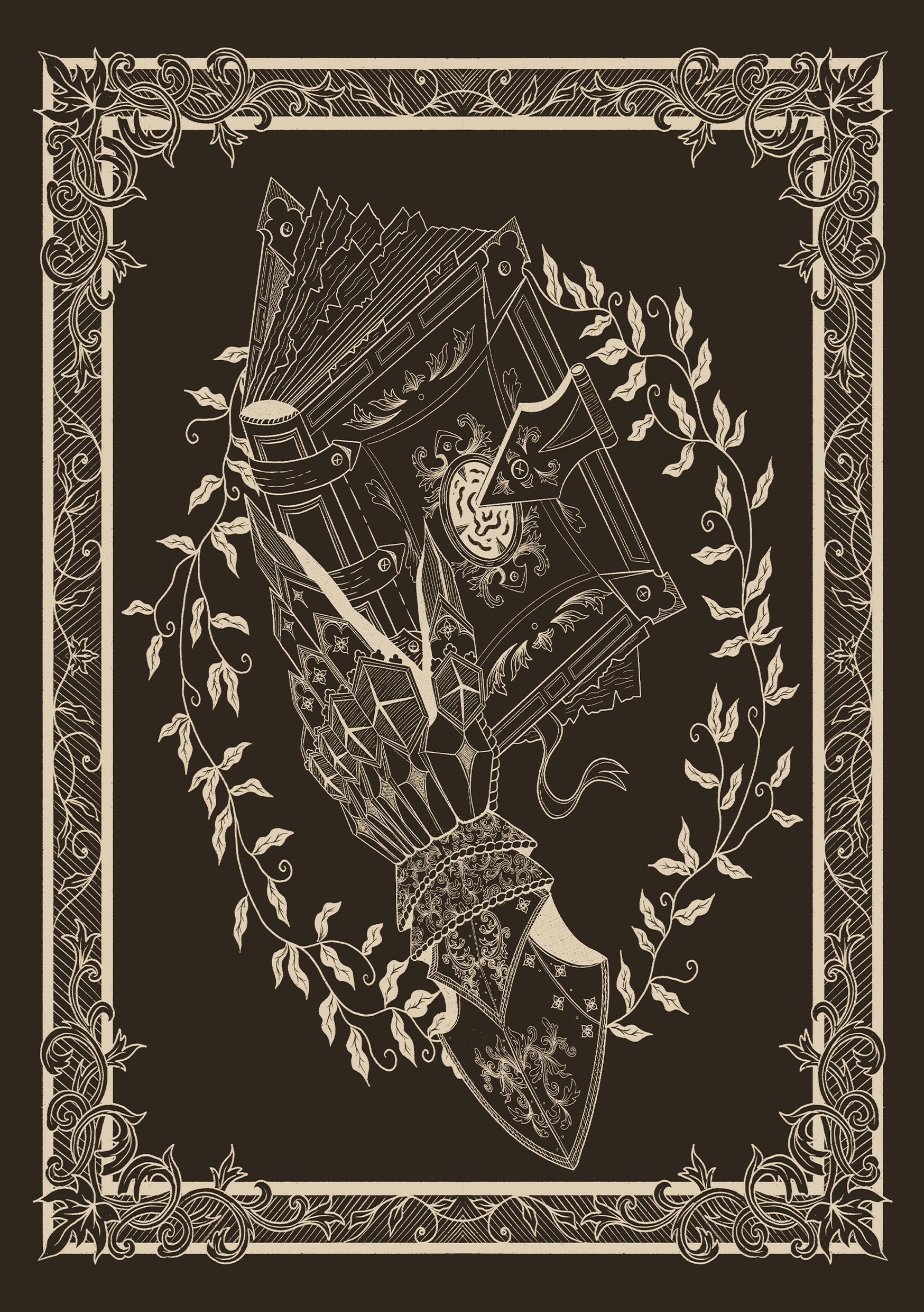 Gauntlet and Tome Vintage Style Print